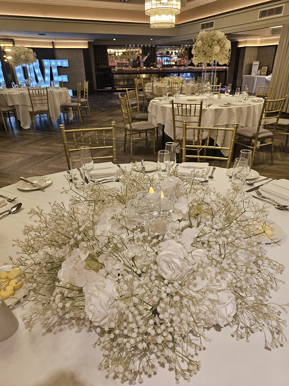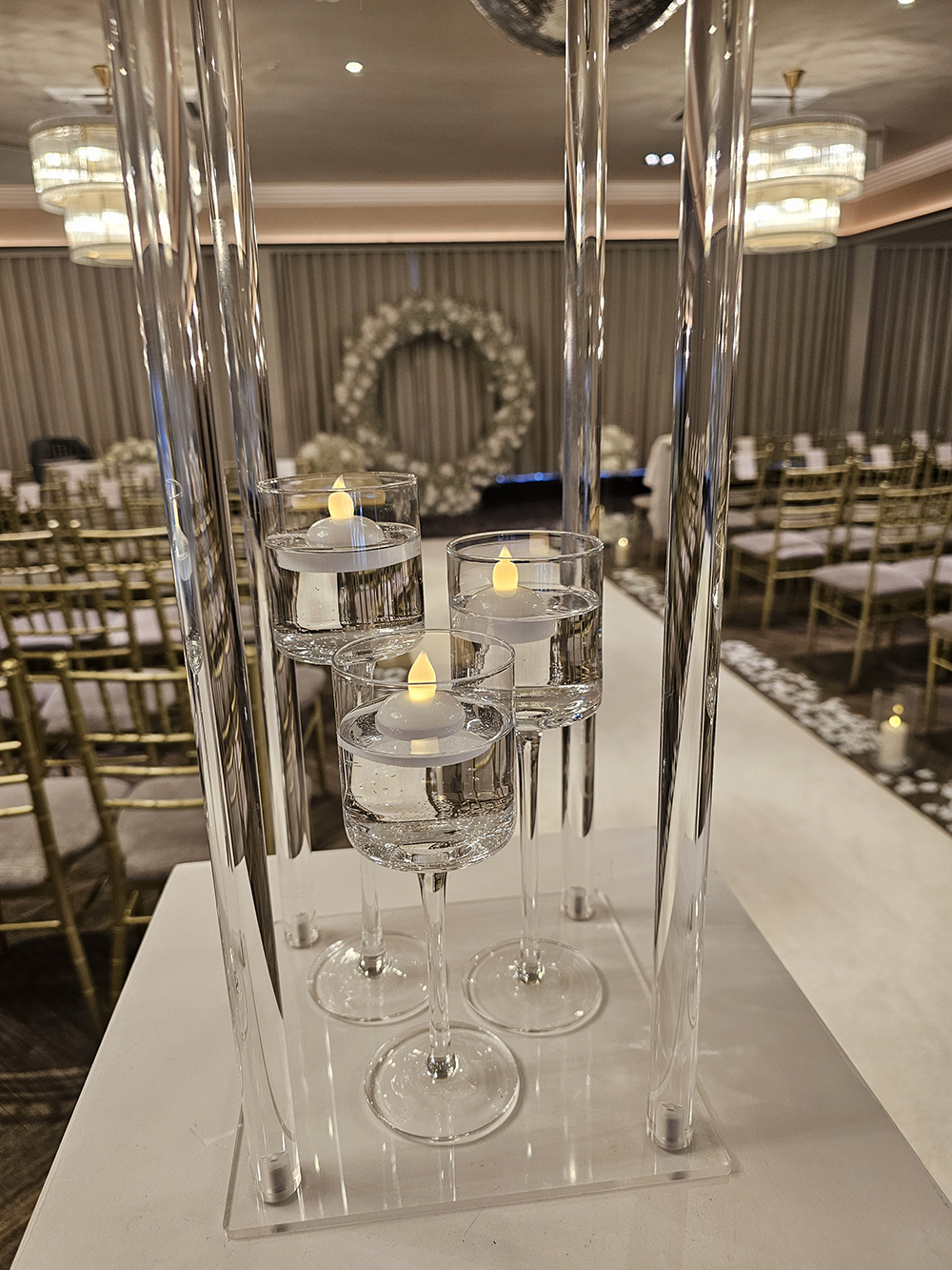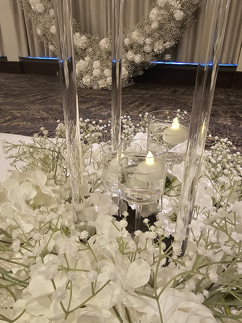 Elevate every moment with the soft, enchanting glow of floating candles and or LEDs luxury and romance in perfect harmony.” Lots of choices available, if looking for real or wax sand candles please approve with your venue first.